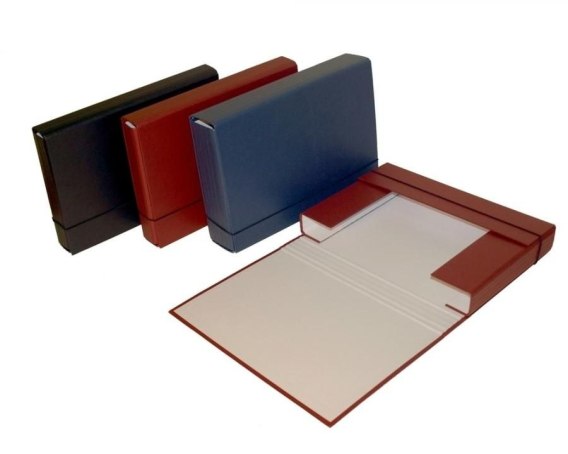 Wykonana ze sztywnej tektury 1,7 lub 2 mm oklejonej z dwóch stron elegancką okleiną. Szerokość grzbietu 6 cm . Zamykanie jej następuje poprzez delikatne rozciągnięcie gumki, zaczepionej o dwa metalowe trzymacze. Nie należy naciągać gumki mocniej, niż wymaga to otwarcie/zamknięcie teczki. Produkt jest przeznaczony do przechowywania i przenoszenia lekkich dokumentów, artykułów plastycznych lub biurowych oraz przedmiotów codziennego użytku, z wyłączeniem rzeczy niebezpiecznych i powodujących zapłon.