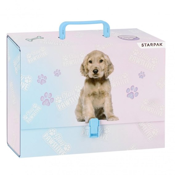 Zalety produktu: Teczka z rączką z kolekcji STARPAK z serii Cuties. Sztywna teczka wykonana z grubego, lakierowanego kartonu. Zamykana na plastikowy klips. Teczkę wyposażono w solidną rączkę. Teczka o szerokości grzbietu 9,5 cm. Idealnie sprawdzi się na zajęciach pozaszkolnych czy do przechowywania prac dziecka. Zapoznaj się również z innymi produktami z tej serii Wymiary/waga: wymiary produktu szer. x wys. x gł. cm : 33x25x10, waga produktu kg : 0,50 kg. Produkt przeznaczony dla dzieci w wieku: 3 . Karton 8 szt.