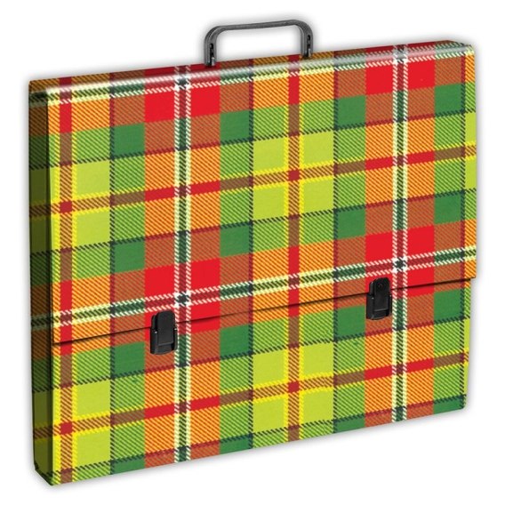 Wykonana z tektury 1,7mm, nitowane boki z okleinowanymi krawędziami.Okleina kratka uszlachetniona folią polipropylenową. Wymiary:46x38x5,8