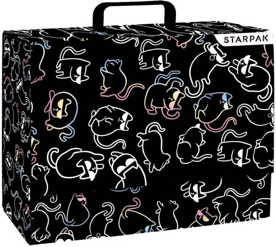Zalety produktu: Teczka z rączką z kolekcji STARPAK z serii Kitty holo. Sztywna teczka wykonana z grubego, lakierowanego kartonu. Zamykana na plastikowy klips. Teczkę wyposażono w solidną rączkę. Teczka o szerokości grzbietu 9,5 cm. Idealnie sprawdzi się na zajęciach pozaszkolnych czy do przechowywania prac dziecka. Zapoznaj się również z innymi produktami z tej serii Wymiary/waga: wymiary produktu szer. x wys. x gł. cm : 33x25x10, waga produktu kg : 0,50 kg. Produkt przeznaczony dla dzieci w wieku: 3 . Karton 8 szt.
