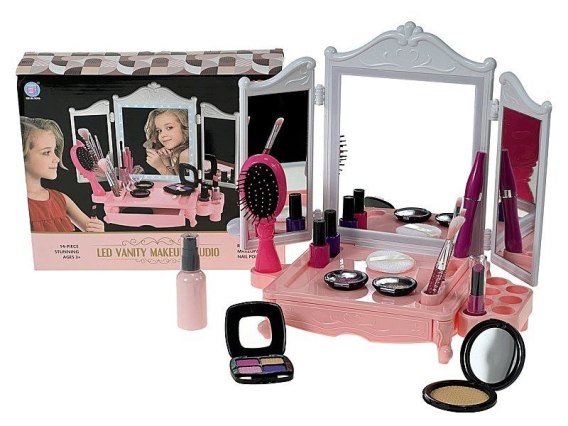 Toaletka na stół z wyposażeniem, 14 elem, 41x20x33cm, na baterie, lustro ze światłem; 31x,5x26x8cm BOX