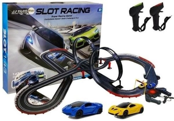 Ogromny Tor 2 Pętle 1:43 Autka Pilot 1020 cm Światła Ogromny tor wyścigowy sprawi dużo radości nie tylko tym młodszym, ale i starszym dzieciom, a nawet dorosłym. Mały fan wyścigów, będzie mógł zbudować własny tor i zwiększać prędkość na niezwykle długim torze. Dwie pętle i ostre zakręty urozmaica jazdę i ucieszą nie jednego fana wyścigów. Zwiększać prędkość może poprzez piloty dołączone do zestawu. Podłączone są do kontrolera, który zasila cały tor. Dużą zaletą jest to, że w autka podczas jazdy świecą przednie światła, więc nawet zabawa w ciemności da dużo frajdy. Długość toru to aż 1020 cm ! Całość wykonana jest w skali 1:43. Zabawa zapewni nie tylko dużo wrażeń, ale także rozwinie zwinność i koordynację wzrokowo- ruchową. Elementy zestawu: - dwa piloty, -dwa autka, - części niezbędne do zbudowania toru, - zasilacz 12V, - instrukcja montażu. Wymiary złożonego toru: 190 cm x 168 cm wymiary pilota: 13 cm x 9 cm wymiary autka: 10 cm x 4,5 cm Wymiary opakowania: 69 cm x 55 cm x 9 cm Przeznaczony dla dzieci powyżej 6 roku życia. Zabawka ma w zestawie zasilacz 12 V, który dołączony jest do zestawu.