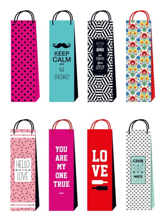 Podłużna torebka prezentowa o wym. 105x350x96 mm w 8 wzorach na każdą okazję.