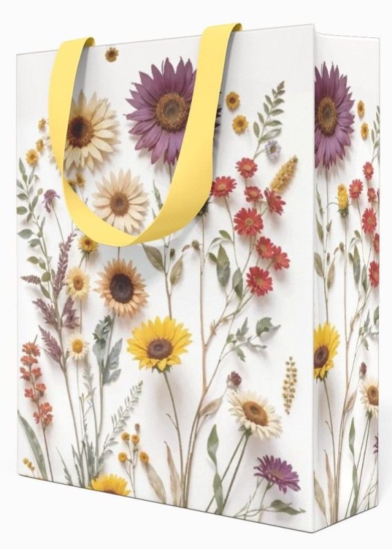 Torby wykonane są z papieru o gramaturze 210 gsm, powlekane matem, , z satynowymi wstążkami.