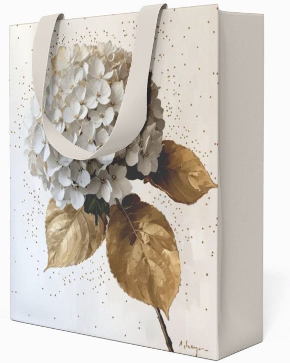 Torby wykonane są z papieru o gramaturze 210 gsm, powlekane matem, , z satynowymi wstążkami.