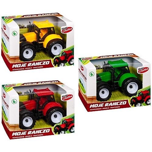 Zalety produktu: Maszyna rolnicza z serii Moje Ranczo MEGA CREATIVE to nowoczesny model traktora posiadający szereg możliwości i efektów pozwalających na różnorodną i rozwijającą zabawę. Traktor pokaże twojemu dziecku jak praca rolnika jest ważna i przyjemna. Produkt wykonany z plastiku, występuje w trzech wariantach kolorystycznych: żółtym, zielonym, czerwonym. Wymiary/waga/baterie: wymiary produktu traktor dł. x wys. x gł. cm : 12x8x7 ,wymiar opakowania dł. x wys. x gł. cm : 15x10x8 , waga produktu bez opakowania traktor kg : 0,06 kg. Waga produktu w opakowaniu kg : 0,09 kg, Nie wymaga zasilania bateriami Zabawka przeznaczona dla dzieci w wieku: 3 . Pakowanie kartonik z okienkiem.
