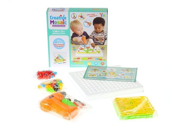 Układanka koralikowa, puzzle do przykręcania, z wiertarką, 138 części; 25,5x25,5x6cm, Box