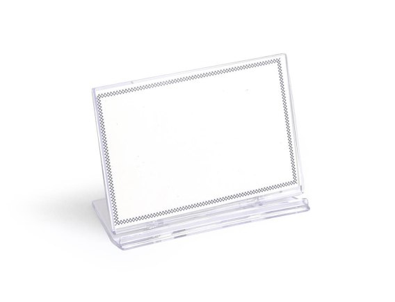 Wizytownik stojący SRD 517, przezroczyste, sztywne tworzywo typu plexi, wygodna, składana podstawka, wymiar: 100 x 67 mm, opakowanie: 24 szt,