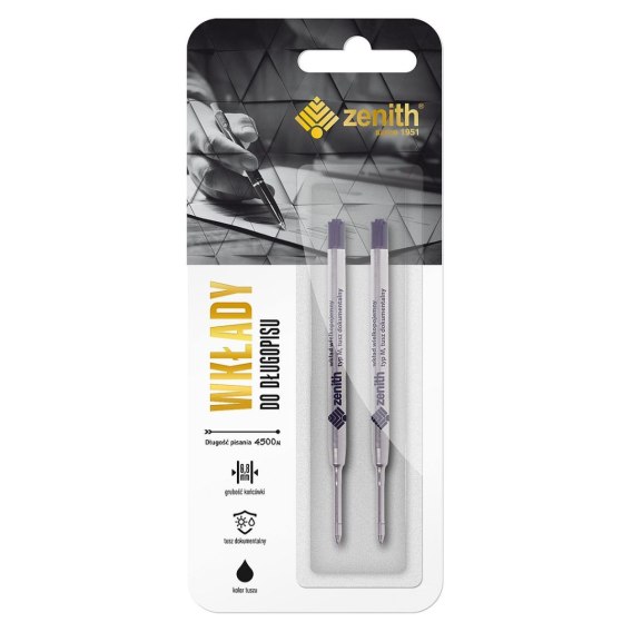 - sprzęgło wkładu wykonane z tworzywa sztucznego, w kolorze tuszu, odpowiednio: niebieskie, czarne lub czerwone