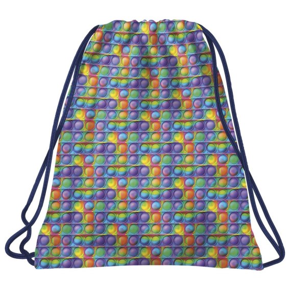 Pop it, czyli kolorowy, bąbelkowy fidget toy, robiący furorę, zawitał również na szkolne korytarze! Intensywne odcienie fioletu, zieleni, czerwieni, błękitu i żółci w połączeniu z modnym motywem bąbelków tworzą wyjątkowy worek na buty. Jego zwariowane kolory z pewnością zrobią furorę na treningu! Worek BackUP: - Sprawdzi się idealnie na WF