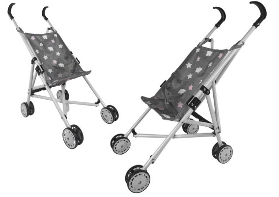 Wózek Dla Lalek Spacerówka Szary w Gwiazdki Wózek spacerówka to idealna zabawka dla dziewczynek, które chcą opiekować się swoimi lalkami. Teraz wychodząc na spacer, może wziąć wózek i lalkę. Zabawa rozwinie w dziecku empatię i nauczy odpowiedzialności. Urozmaici zabawę w dom, dzięki czemu każda dziewczynka może poczuć się jak mamusia i spędzać czas ze swoją lalką. Zabawa w odgrywanie ról pozytywnie wpłynie, uczy zasad komunikacji interpersonalnej i wcielania się w rozmaite role. Jest to także fantastyczna pomoc usprawniająca koordynację ruchową i motorykę. Wózek wyposażony jest w cztery koła umożliwiające łatwe prowadzenie go nawet po nierównych nawierzchniach. Wózek ma szary kolor i dwukolorowe gwiazdki. Dodatkowym atutem jest to, że jest składany, bez problemu zmieści się do auta i będzie można zabrać go na wspólną rodzinną wycieczkę. Wymiary wózka: 40 cm x 26 cm x 53 cm wysokość 53 cm Wymiary opakowania: 60 cm x 11 cm x 9 cm Przeznaczony dla dzieci powyżej 3 roku życia. Zgodny z normą EN71. Zabawka wykonana jest z certyfikowanego materiału, jakim jest wytrzymały na częste użytkowanie plastik.