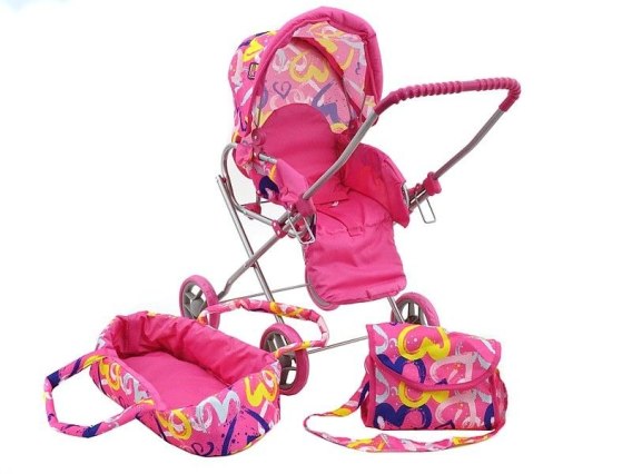 Wózek dla lalek, głęboki, z koszem, składany daszek, wyjmowane nosidełko, torebka, 2w1 (z funkcją spacerówki), PVCB