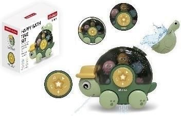 W zestawie: żółw na kółkach, żółw-miseczka do wlewania wody, półeczka do mocowania do ściany, 3 przyssawki, Funkcje: żółw posiada 2 miejsca do wlewania wody, kapelusz (ruszają się oczy), skorupa (obracają się zwierzątka w skorupie), piszczek, jeździ, Pozostałe informacje: wym. zabawki 20 x 15 x 8 cm, wym. opak. 24 x 20,5 x 11,5 cm, 18m+