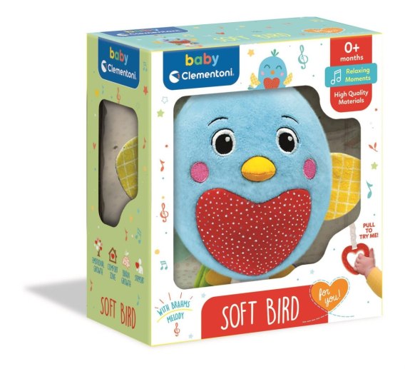 Pozytywka ptaszek 17821 Clementoni Sympatyczna maskotka, która zajmie dziecko i wyciszy je przed zaśnięciem. Po pociągnięciu za plastikowe serduszko włączy się pozytywka odtwarzająca muzykę Brahmsa. Dzięki praktycznemu uchwytowi maskotkę można zawiesić na łóżeczku lub wózku. Różnorodne materiały oraz plastikowy element pobudzają zmysły dziecka - może ono bawić się ptaszkiem bądź włączać muzykę, ćwicząc w ten sposób rozumienie związków przyczynowo-skutkowych. Wiek: +0m waga - 0.25