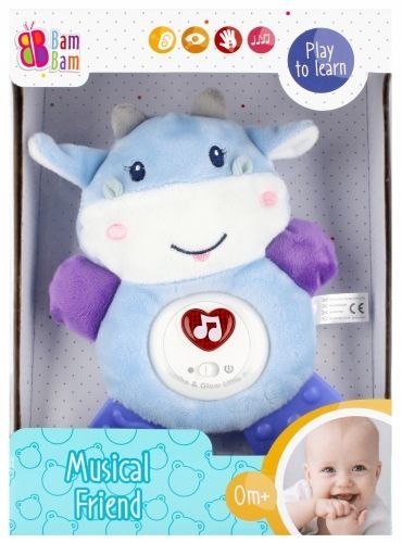 Interaktywna Muzyczna KRÓWKA to zabawka spełniająca aż 4 funkcję- przywieszki, maskotki, gryzaka oraz pozytywki, na każdy etap rozwoju dziecka. Zróżnicowana faktura i materiały, w tym ruchome elementy oraz mrugające przyciski, wygrywające melodie, dostarczają szeregu bodźców, aktywizując wszechstronny rozwój dziecka, począwszy od zmysłów poprzez zdolności manualne, motoryczne oraz percepcję i wyobraźnię. Nogi krówki wykonane z kolorowego , miękkiegp tworzywa pełnią rolę gryzaka, przynosząc ulgę dziecku w trudnym okresie ząbkowania. Wymiary/waga/baterie: wymiary produktu dł. x wys. x gł. cm : 15x19x5, wymiary opakowania dł. x wys. x gł. cm : 18x25x8, waga produktu bez opakowania kg : 0,10 kg, waga produktu w opakowaniu kg : 0,25 kg. Zabawka przeznaczona dla dzieci w wieku: 0 m-ca. Wymaga zasilania bateriami 3 x AG13LR44- załączono do zestawu. Zestaw pakowany w kartonik z okienkiem.