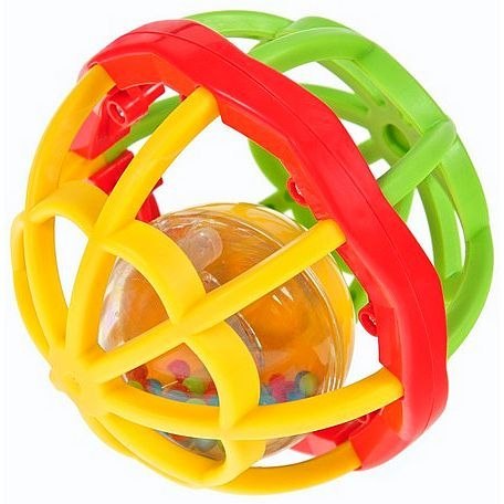 GUMOWA KULA dla dziecka od 10 miesiąca, to nie tylko doskonała zabawka do rzucania, turlania i toczenia ale także do zabawy podczas kąpieli. Wewnątrz kolorowego okręgu utkanego z plastikowych paseczków, znajduje się przezroczysta kula wypełniona tęczowymi kuleczkami obijającymi się o siebie podczas podrzucania. Zabawka doskonale wpływa na rozwój zdolności motorycznych i manualnych.