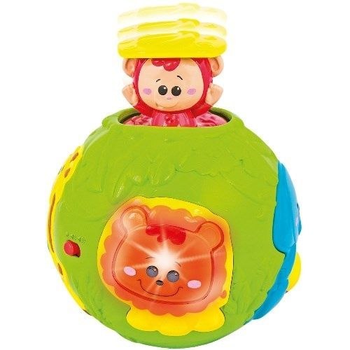 Aktywizuje zabawę dziecka dzięki różnym niespodziankom. Naciśnij lwa, a wyskoczy małpka. Lew zaświeci i wyda śmieszne odgłosy. Przesuwaj koraliki żyrafy, obracaj kulą słonia.