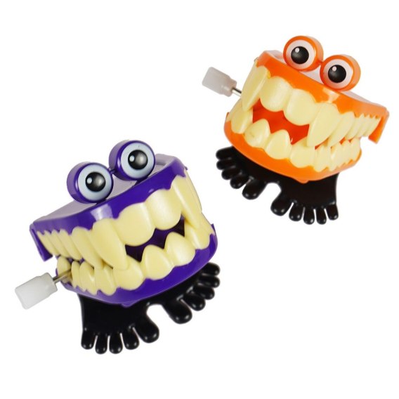 Nakręcana szczęka - zabawka skacząca, idealna na imprezę halloweenową.