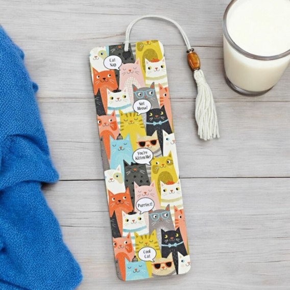 Zakładka do książki firmy Peter Pauper Press - Koty (Cats). Zakładka ma dopasowaną kolorystycznie wstążkę z frędzlem oraz koralik. Barwne, trwałe, zabawne lub motywujące nadruki sprawią, że czytanie będzie jeszcze ciekawsze. Każda zakładka jest drukowana na trwałym, powlekanym kartonie i pakowana w przezroczystą osłonkę. Uniwersalny wymiar 6,4 x 18,1 cm.