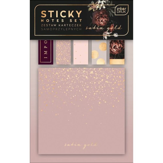 Elegancki zestaw papierowych karteczek samoprzylepnych w subtelnej, kobiecej kolorystyce. Całość na wygodnym, grubym kartoniku ułatwiającym używanie. Karteczki uszlachetnione złotymi detalami w technologii hot-stamping, które dodają produktowi niepowtarzalnego uroku. Do codziennej organizacji, zaznaczania stron w książkach, robienia krótkich notatek oraz zostawiania ważnych wiadomości. Nie pozostawiają śladu po odklejeniu. Można po nich pisać. Formaty: 100x12x45 mm, 20x70x70 mm. Jeden produkt zawiera 120 szt. karteczek. Poznaj pozostałe produkty z naszej kolekcji Satin Gold - korektory, gumki, długopisy, zszywacze i artykuły papiernicze - i stwórz swój niepowtarzalny zestaw.