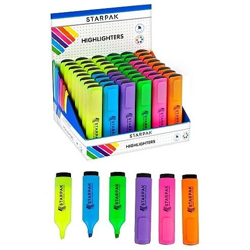Zalety produktu: Tradycyjne zakreślacze Starpak na bazie wody w żywych i intensywnych kolorach. Ułatwiają zaznaczanie najważniejszych treści, doskonałe do biura i szkoły. Zapoznaj się również z innymi produktami dedykowanymi biurze i szkole Zakreślacze zapakowane w kartonowy display po 48 szt. W opakowaniu znajduję się 6 kolorów: żółty, niebieski, fioletowy, zielony, różowy oraz pomarańczowy. Wykonane z tworzywa sztucznego. Produkt nie odpowiedni dla dzieci poniżej 3 lat. Wymiary produktu: 11 cm. Wymiary opakowania wys. szer. x gł. cm 11x19x17. Waga opakowania kg. 0,90kg.