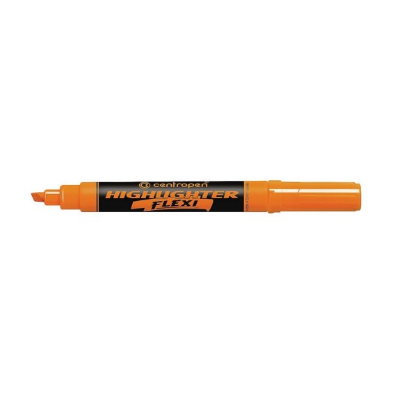 FLEXI ZAKREŚLACZ z elastyczna, miękką końcowka, Fluorescencyjny tusz, Duża pojemność, Intensywny kolor, Nie przebija przez papier, Błyszczące wykończenie korpusu, Kilka szerokości linii pisania, Szerokość linii pisania: 1 - 5 mm