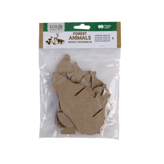 Zestaw kształtów tekturowych do złożenia przestrzennych zwierząt leśnych – jeleń, sarna, niedźwiedź, lis, wiewiórka. Naturalne kształty zwierząt można odrysowywać na papierze a z poskładanych tworzyć kompozycje leśne i świąteczne. Świetne do zabawy z dziećmi w domu i przedszkolu oraz tworzenia oryginalnych dekoracji. Doskonałe w połączeniu z choinkami i drzewami z zestawów Christmas tree oraz Tree. 5 kształtów w opak. o wysokości od 9 cm do 22 cm.