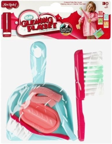 Zalety produktu: rozwija wyobraźnię dziecka, ćwiczy precyzję ruchową, uczy naśladowania czynności wykonywanych przez dorosłych, uczy dbania o porządek. Zestaw do sprzątania, który nauczy dzieci dbania o porządek, świetnie się przy tym bawiąc. Zawartość zestawu: szufelka, zmiotka, mała zmiotka, , gąbka z rączką do mycia naczyń, gąbka z uchwytem. Całość wykonana z plastiku, gąbki i włosia. Wymiary/waga/baterie: wymiary produktu (dł.)[cm]: szufelka-12x19 cm, zmiotka 16x5 cm, wymiary opakowania (dł. x wys. x gł.) [cm]: 21x28x4, waga produktu bez opakowania [kg]: 0,27 kg, waga produktu w opakowaniu [kg]: 0,08 kg, nie wymaga zasilania bateriami. Zestaw przeznaczony dla dzieci w wieku: 3+. Zestaw pakowany w woreczek z zawieszką. W kartonie zbiorczym po 90/180 szt.
