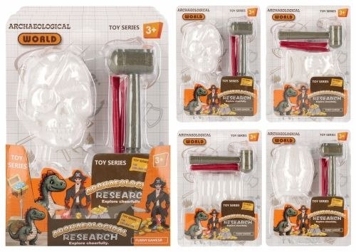 Zalety produktu: rozwija kreatywność dziecka cierpliwość i koncentrację, zdolności manualne oraz wiedzę o pracy archeologa i historii dawnych kultur. Wejdź w rolę prawdziwego archeologa i odkryj tajemnice przeszłości! Ten wyjątkowy zestaw edukacyjny pozwoli Ci wcielić się w badacza, który z pędzelkiem i dłutkiem wydobywa skarby ukryte w skale. Wewnątrz bloku gipsowego znajdziesz realistyczny model czaszki, beczki lub skrzyni który po wykopaniu możesz umyć, złożyć i zaprezentować niczym muzealny eksponat. Zestaw występuje w trzech wzorach. Zawartość zestawu: odlew gipsowy, młoteczek, dłutka. Zestaw wykonany z gipsu oraz plastiku. Wymiary/waga/baterie: wymiary produktu (dł. x wys. x gł.)[cm]: 5x8x3, wymiary opakowania (dł. x wys. x gł.)[cm]: 13x18x4, wymiary displaya (dł. x wys. x gł.)[cm]: 14x9x30, waga produktu bez opakowania [kg]: 0,06 kg, waga produktu w opakowaniu [kg]: 0,09 kg, waga displaya [kg]: 0,88 kg, nie wymaga zasilania bateriami. Zestaw przeznaczony dla dzieci w wieku: 3+. Pakowany na blistrze w display po 8 szt. W kartonie zbiorczym po 144 szt.