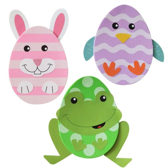 Zestaw kreatywny DIY do samodzielnego wykonania pisanek. Zabawne pisanki zwierzątka. Idealne do wspólnej zabawy z dziećmi, rozwijania kreatywnego myślenia i precyzyjnego działania. W skład zestawu wchodzą: - 12 naklejek papierowych, - 3 piankowe jaja w rozmiarze 9 cm, - 3 wstążeczki do utworzenia zawieszek.