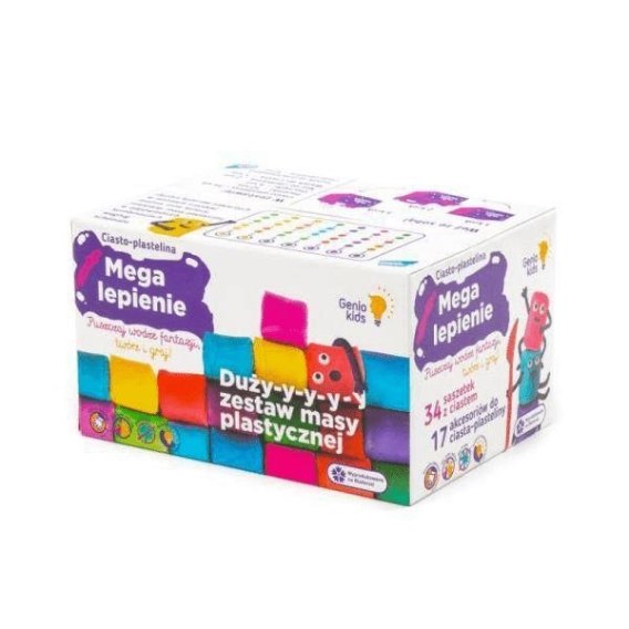 Duży zestaw ciastoliny twórz i graj. Mega lepienie oprócz lepienia zawartych w zestawie ciasta można uzyskać inne kolory, mieszając masy według schematu. Zestaw zawiera ciasto plastelina 34szt, foremki 10szt, pieczątki 4 szt, nóż do rzeźbienia 2szt, Wałek do ciasta 1 szt oraz woreczki do przechowywania ciastoliny 10szt. Plastelina rozwija zdolności manualne oraz kreatywne myślenie. Ciasto nie brudzi ubrań oraz jest to świetna zabawa dla całej rodziny.