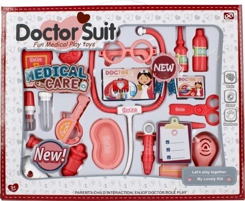 Zalety produktu: pobudza wyobraźnie dziecka, nauka opieki nad chorym, rozwija kreatywność dziecka, posiada efekty dźwiękowe oraz świetlne- stetoskop posiada odgłos bicia serca oraz pulsującą czerwoną lampkę. MEGA CREATIVE przedstawia Zestaw Lekarski ze wszystkimi niezbędnymi przyrządami lekarskimi. Z tym zestawem, wszyscy pacjenci zostaną wyleczeni Zawartość zestawu m. innymi: stetoskop, maseczka, karta pacjenta, strzykawka, nożyczki, butelka z lekami, okulary, młoteczek, tacka na narzędzia, termometr, fiolka na krew, kartonowe opakowanie z imitacją leków. Całość wykonana z plastiku oraz kartonu. Wymiary/waga/baterie: wymiary produktu dł. x szer. cm : stetoskop- 49x14, wymiary opakowania dł. x wys. x gł. cm : 45x36x4, waga produktu bez opakowania kg : 0,39 kg, waga produktu w opakowaniu kg : 0,86 kg, wymaga zasilania bateriami 2 x AG10- załączono do zestawu. Zestaw przeznaczony dla dzieci w wieku: 3 . Pakowany w kartonik z okienkiem. W kartonie zbiorczym po 36 szt.