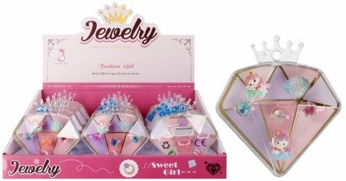 Zalety produktu: rozwijanie u dziecka poczucia estetyki, rozwijanie wyobraźni poprzez różne scenariusze zabawy. Czy jakaś Księżniczka nie posiada własnego kącika piękności? Spokojnie MEGA CREATIVE zadbało o to, by każda młoda Księżniczka uzupełniła swoją garderobę o piękne dodatki i akcesoria Zawartość zestawu: mix akcesoriów do włosów i mix biżuterii. Całość wykonana z plastiku i materiału. Zestaw w różnorodnych kolorach i różnorodnych kształtach, zamknięty w pięknym przezroczystym plastikowym pudełeczku w kształcie diamentu. Wymiary/waga/baterie: wymiary produktu- diament dł. x wys. cm : 10x11x6, wymiar opakowania-display dł. x wys. x gł. cm : 32x12x23, waga produktu diament kg : 0,009 kg, waga produktu w opakowaniu-display A& 39;12 kg : 1,60 kg, Nie wymaga zasilania bateriami. Zestaw przeznaczony dla dzieci w wieku: 3 Pakowany w display po 12 szt. W kartonie zbiorczym po 108/216szt.