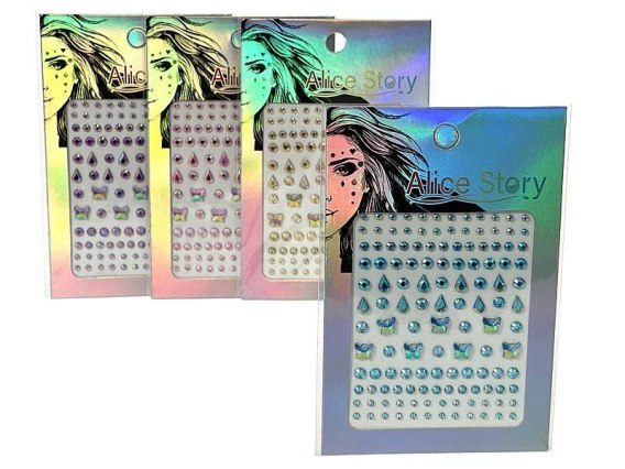 Zestaw naklejek do zdobienia twarzy, diamenciki; 15x9,5cm, B/C