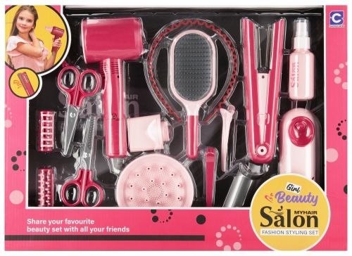 Zalety produktu: rozwija kreatywność dziecka, dziecko może poczuć się jak mała Księżniczka. Zestaw Piękności to podstawowa pozycja w kolekcji zabawek każdej dziewczynki, wchodzącej coraz większymi krokami w życie. Akcesoria MEGA CREATIVE wydobędą z niej prawdziwą młodą damę! Zawartość zestawu: suszarka do włosów + akcesoria, prostownica do włosów + akcesoria, szczotka do włosów, 2x nożyczki, 2x wałki do włosów, 2x klamry do włosów, 1x spray do włosów, 1x opaska do włosów. Wszystkie produkty wykonane z plastiku i są imitacją prawdziwych. Wymiary/waga/baterie: wymiar opakowania (dł. x wys. x gł.) [cm]: 48x34x7, waga produktu w opakowaniu [kg]: 0,76 kg, wymiar produktu )dł. x wys. x gł.) (cm) suszarka 9x22x5, waga produktu bez opakowania [kg]: 0,40 kg, Wymaga zasilania bateriami -5xAAA LR03- nie załączonymi do zestawu . Zestaw przeznaczony dla dzieci w wieku: 3+ . Zestaw pakowany w kartonik z okienkiem. W kartonie zbiorczym po 12/24 szt.