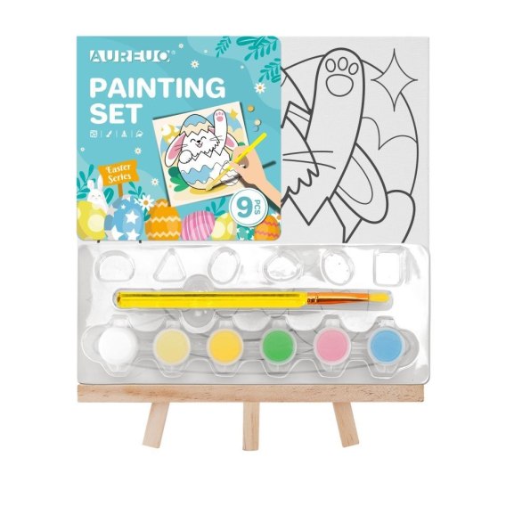Zestaw do malowania 9 el. podobrazie 20x20cm, farby akrylowe 6 kol., sztaluga, pędzel, Aureuo