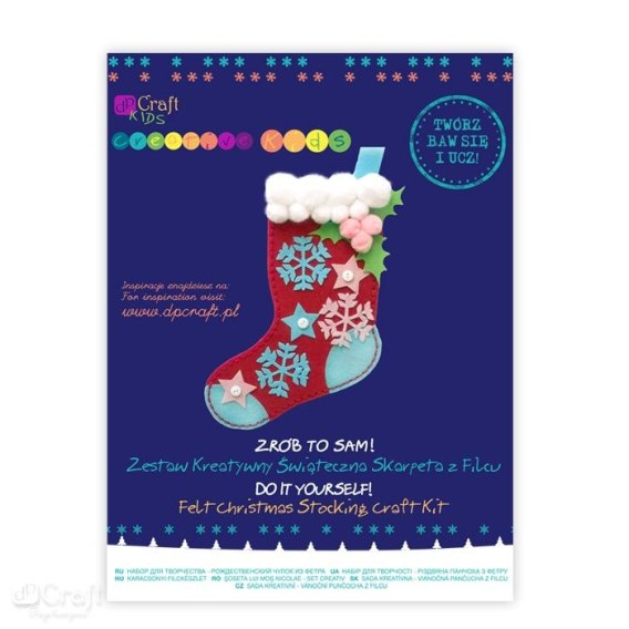 -ZESTAW KREATYWNY, DZIĘKI KTÓREMU MOŻNA STWORZYĆ ŚWIĄTECZNĄ SKARPETĘ Z FILCU