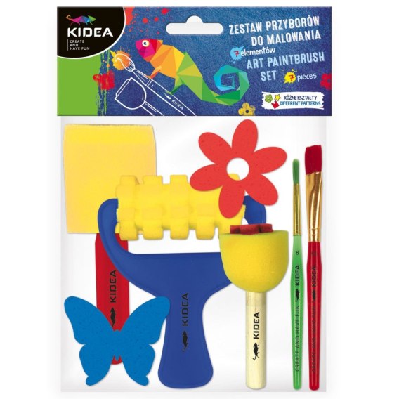 Praktyczny zestaw do malowania farbami, który gwarantuje wspaniałą zabawę. W skład zestawu wchodzą 2 pędzle: płaski do wypełniania większych powierzchni oraz drugi do malowania elementów wymagających większej precyzji. Dodatkowo w komplecie znajdziemy wałek, szeroki pędzel gąbkowy, stempelek - motylek z drewnianą rączką, oraz dwa kolorowe stempelki gąbkowe w kształcie motylka i kwiatka.