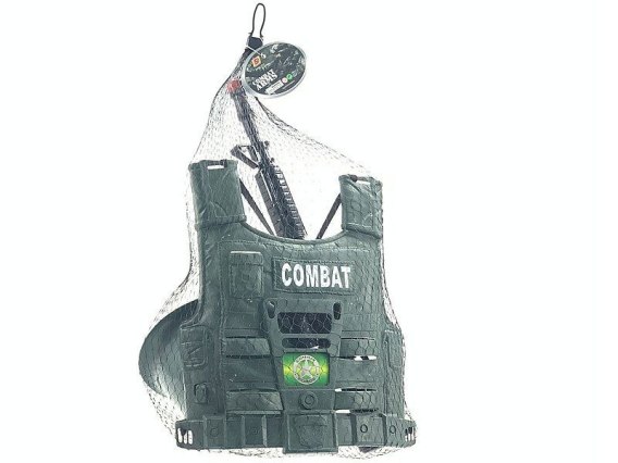 Zestaw policyjny z kamizelką i hełmem; 50x33x16cm, siatka