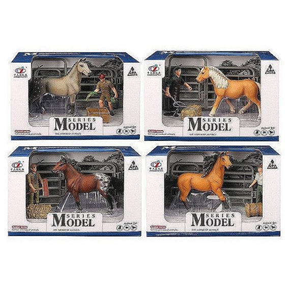 Zestaw stajnia - koń, zagroda, stajenny, realistyczny wgląd, 4 asort; 22x10x14,5cm, W/B