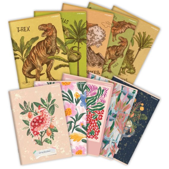 Kolekcja zeszytów inspirowana światem dinozaurów i domowymi kwiatami - łączy w sobie 2 zupełnie różne style ilustracji. 5 okładek przedstawia ryciny z wizerunkami i nazwami dinozaurów na tle elementów natury. Kolejne 5 to abstrakcyjne kwiaty w postaci wzorów lub umieszczone w wazonach. Wszystkie ilustracje zostały indywidualnie zaprojektowane, dzięki czemu są niepowtarzalne i jedyne w swoim rodzaju. Znajdź swoją ulubioną okładkę z kolekcji Dino Spring i wyróżnij się w klasie! Cechy główne Dwie kolekcje w jednej to jeszcze więcej różnorodnych okładek do wyboru Matowa folia i wybiórczy lakier wypukły nadają okładkom elegancji Wewnętrzne adresówki z kolorowym nadrukiem umożliwiają wygodne podpisanie zeszytów Miękkie okładki wykonane z lekkiego kartonu nie obciążają plecaka Grzbiet zszywany zszywkami zapewnia trwałość zeszytów i wygodę pisania Cechy dodatkowe Format A5 32 kartki w kratkę z marginesem 10 różnych okładek Papier o grubości 70 g/m2 Kod 400169404 EAN 5904017411222